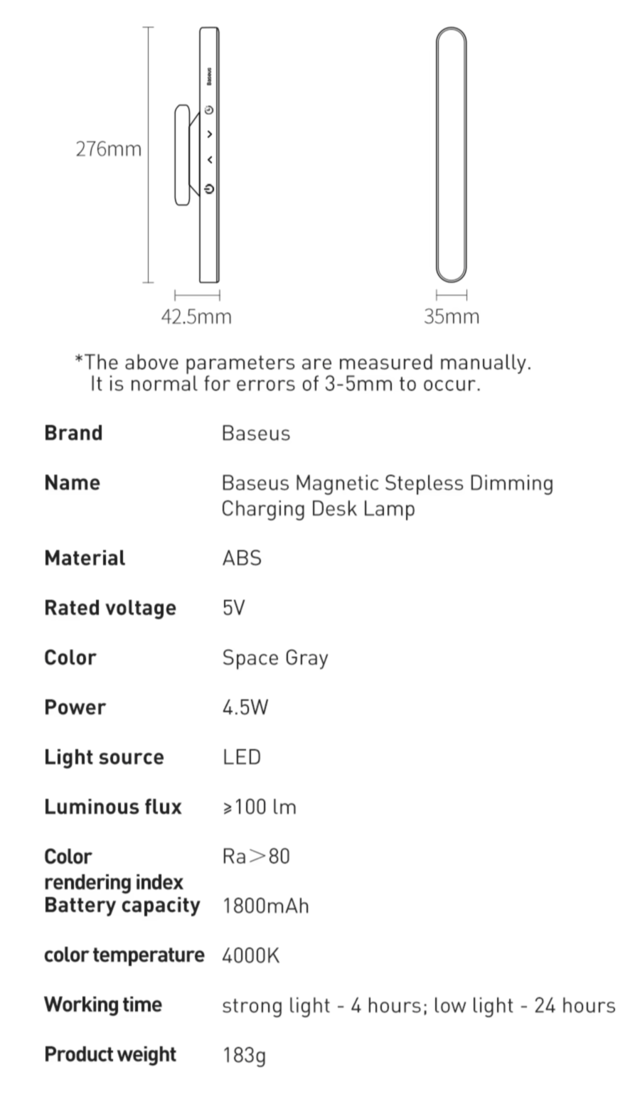 The night lamp boasts a 24-hour battery life, providing high light for approximately 4 hours and low light for up to 24 hours.
