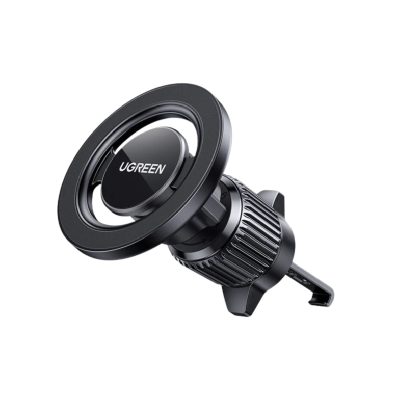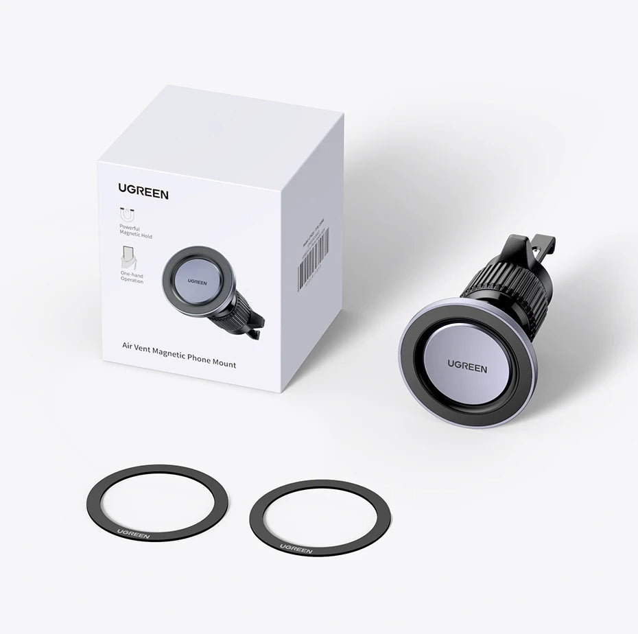 UGREEN Magnetic Car Phone Holder provides stable hold with vent clip gripping firmly and strong magnetic connection for secure phone placement.
